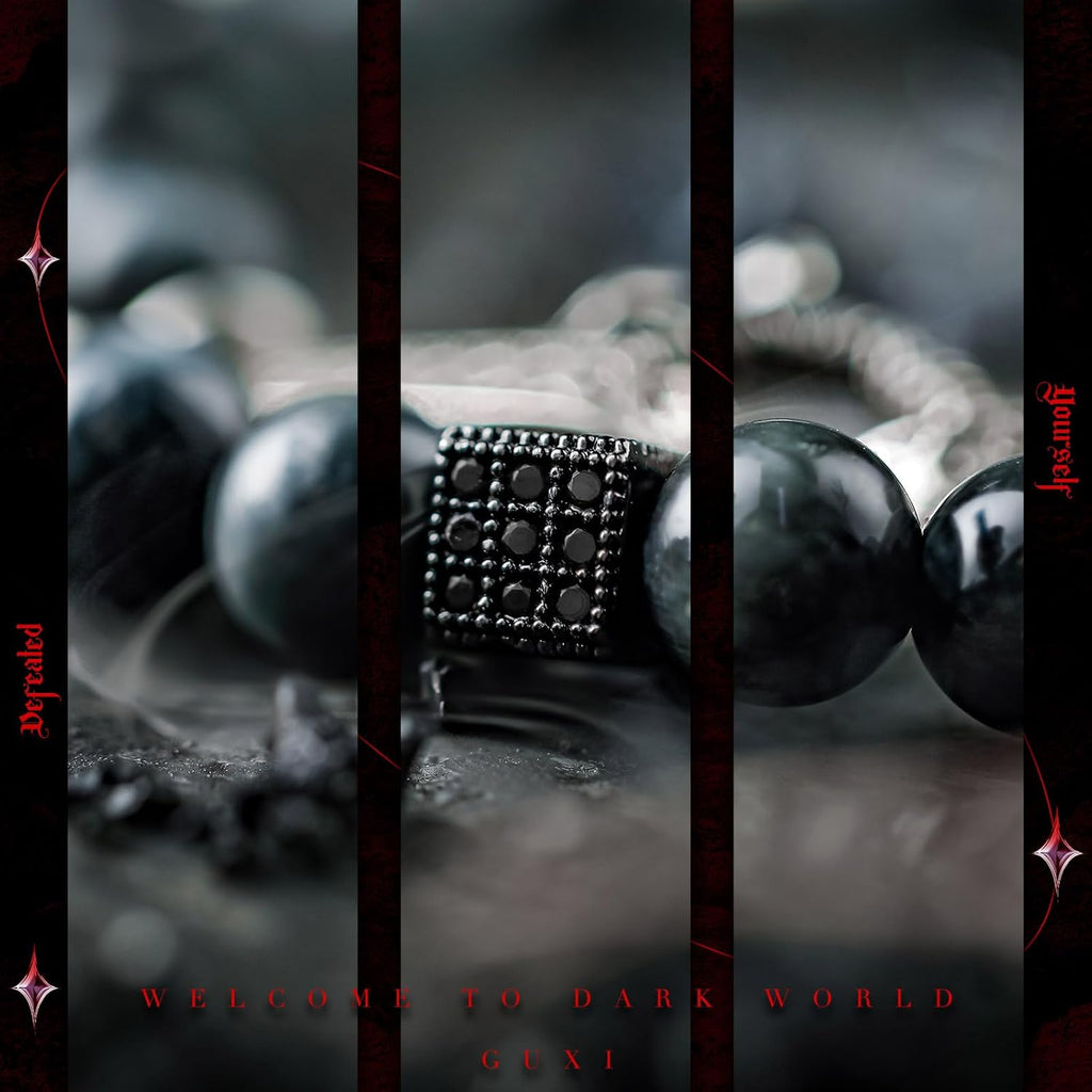 There are various jewels on black stones